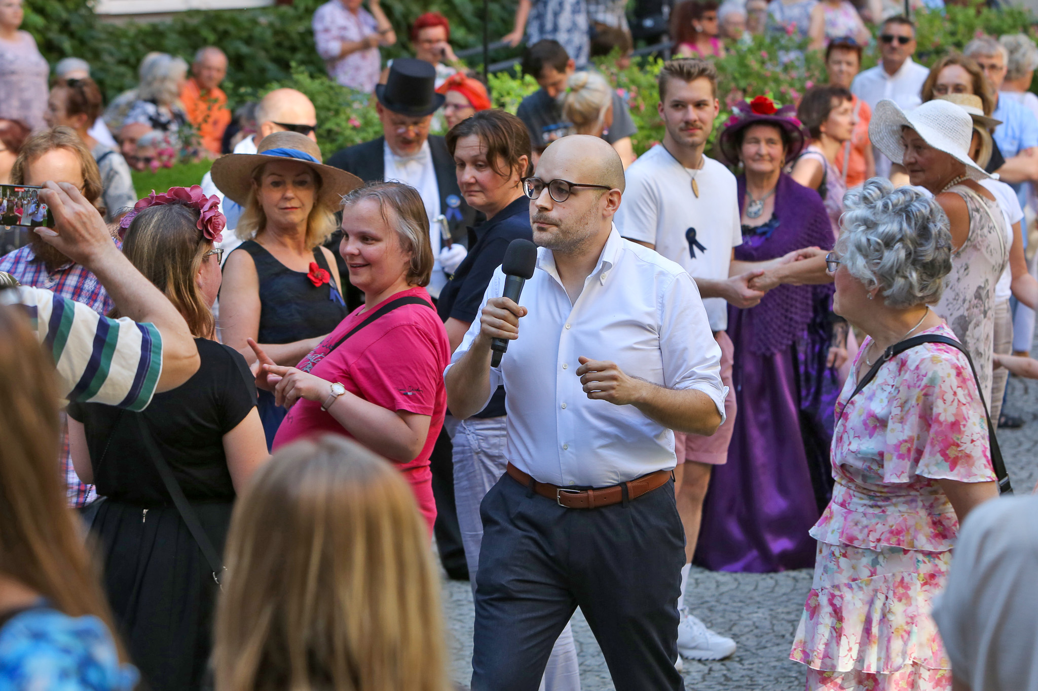 Zaczęliśmy od roku 1823 – lekcją kadryla, którą poprowadził pan Szymon Dudycz z Zespołu Tańca Dawnego Uniwersytetu Wrocławskiego. Tańczyliśmy w towarzystwie Pań ze Stowarzyszenia Rekonstrukcji Historycznej i Kostiumingu „Krynolina”, które zaprezentowały suknie dzienne z tego okresu. Następnie przenieśliśmy się w rok 1923, by tanecznym krokiem przejść przez muzyczne szlagiery z lat 20. i 30. XX wieku, a wieczór zakończyć hitami z roku 2023.